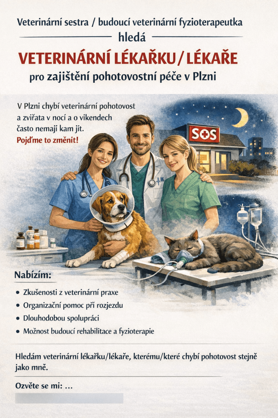 Hledám veterinárního lékaře / lékařku, který/á by měl/a zájem společně hledat cestu, jak v Plzni pohotovostní péči znovu zajistit.