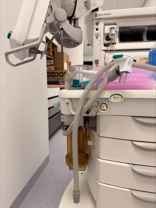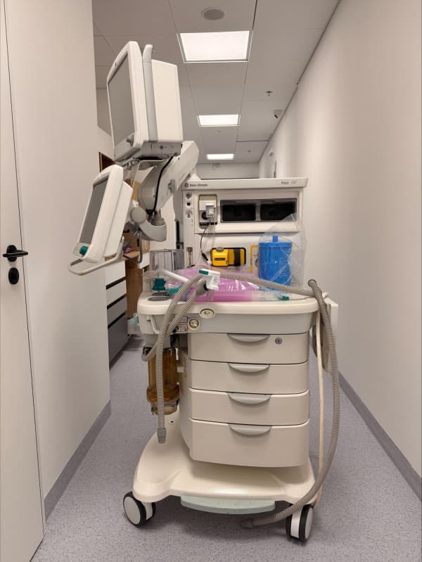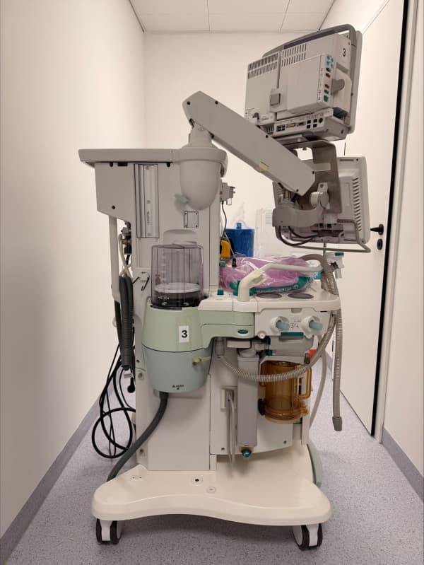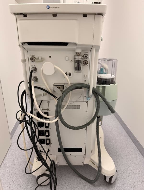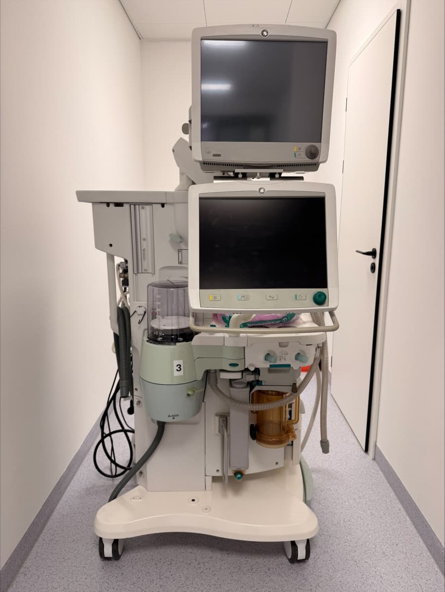 Integrovaná monitorace (konektivita): Přístroj je obvykle propojen s monitorem vitálních funkcí GE Healthcare (např. řada B650/B850), což zajišťuje komplexní přehled o pacientovi, včetně měření hloubky anestezie (modul Entropy) a relaxace (NMT).