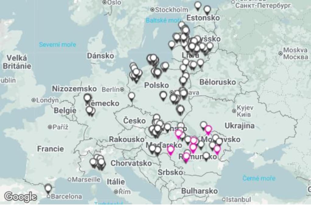 Mapa č. 2 - Ohniska AMP u domácích prasat () a případy AMP u prasat divokých () v Evropě v období 28. 3. - 10. 4. 2026