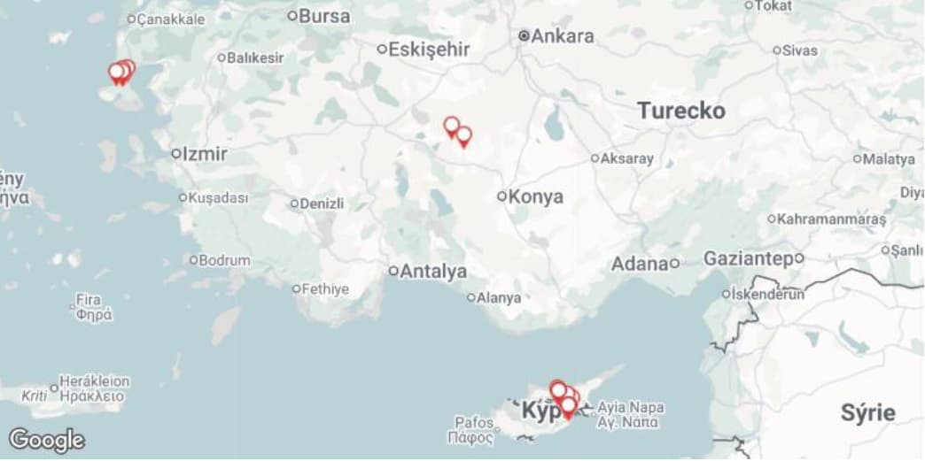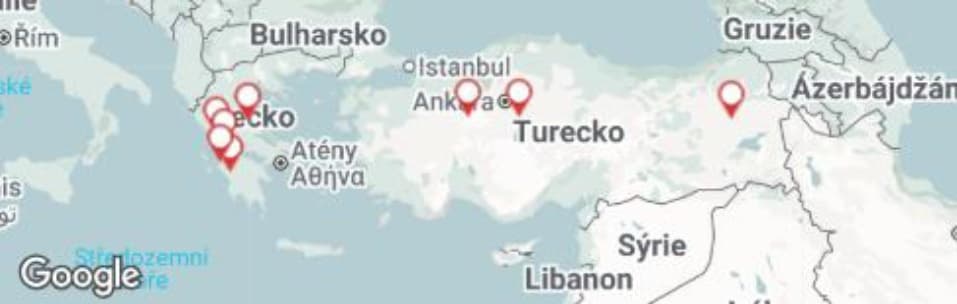 SLAK – 19x Kypr (Kyperská republika), 5x Řecko (ostrov Lesbos), a 2x Turecko