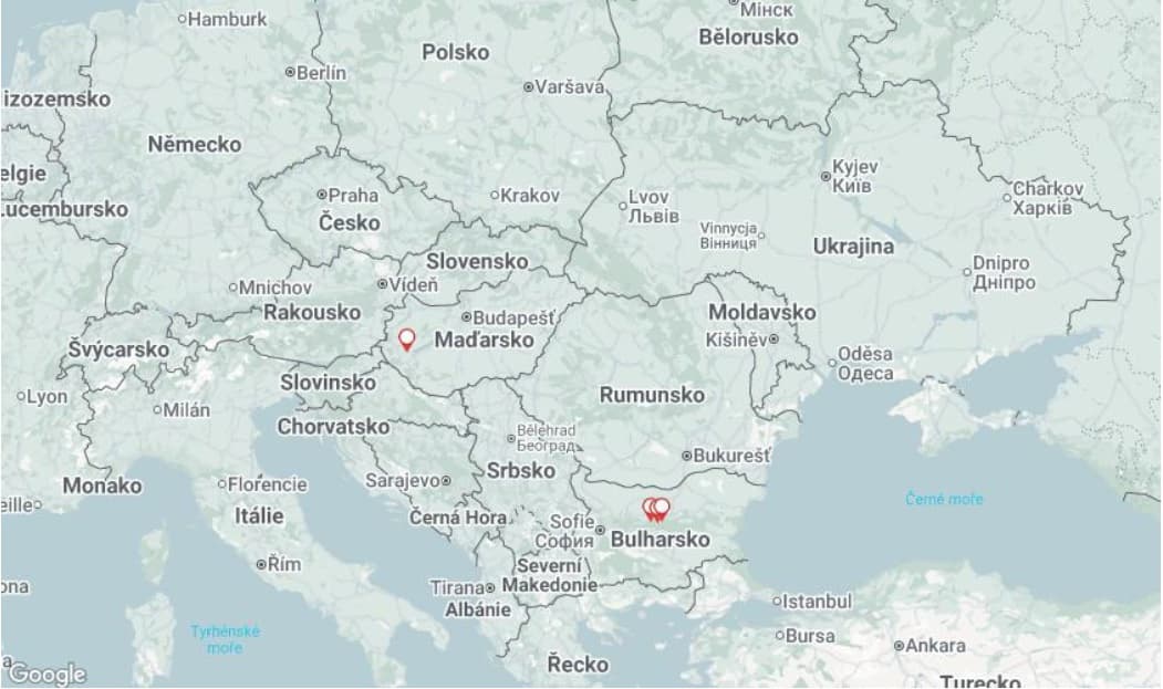 V období 3. - 23. 11. 2025 byla do systému ADIS hlášena ohniska: Bulharsko 3x, Maďarsko 1x. Viz mapa č. 5. Nicméně je potřeba si uvědomit, že tato ohniska jsou hlášena pouze na novém území, které bylo doposud prosté příslušného sérotypu nákazy KHO. Vzhledem k těmto novým ohniskům se brzy předpokládá změna mapy infikovaných území – mapa č. 6