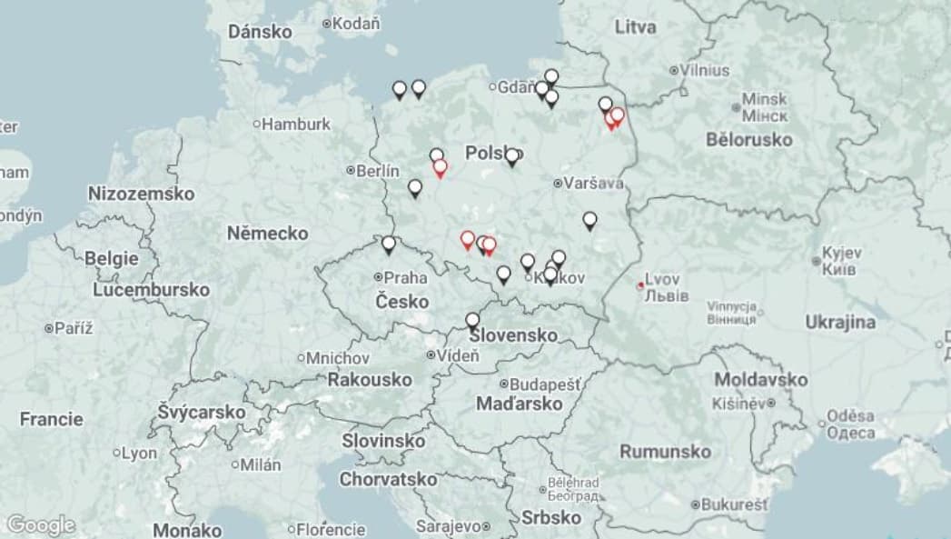 Mapa č. 5: ohniska KHO v Evropě v období 3. - 23. 11. 2025